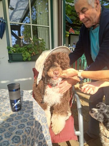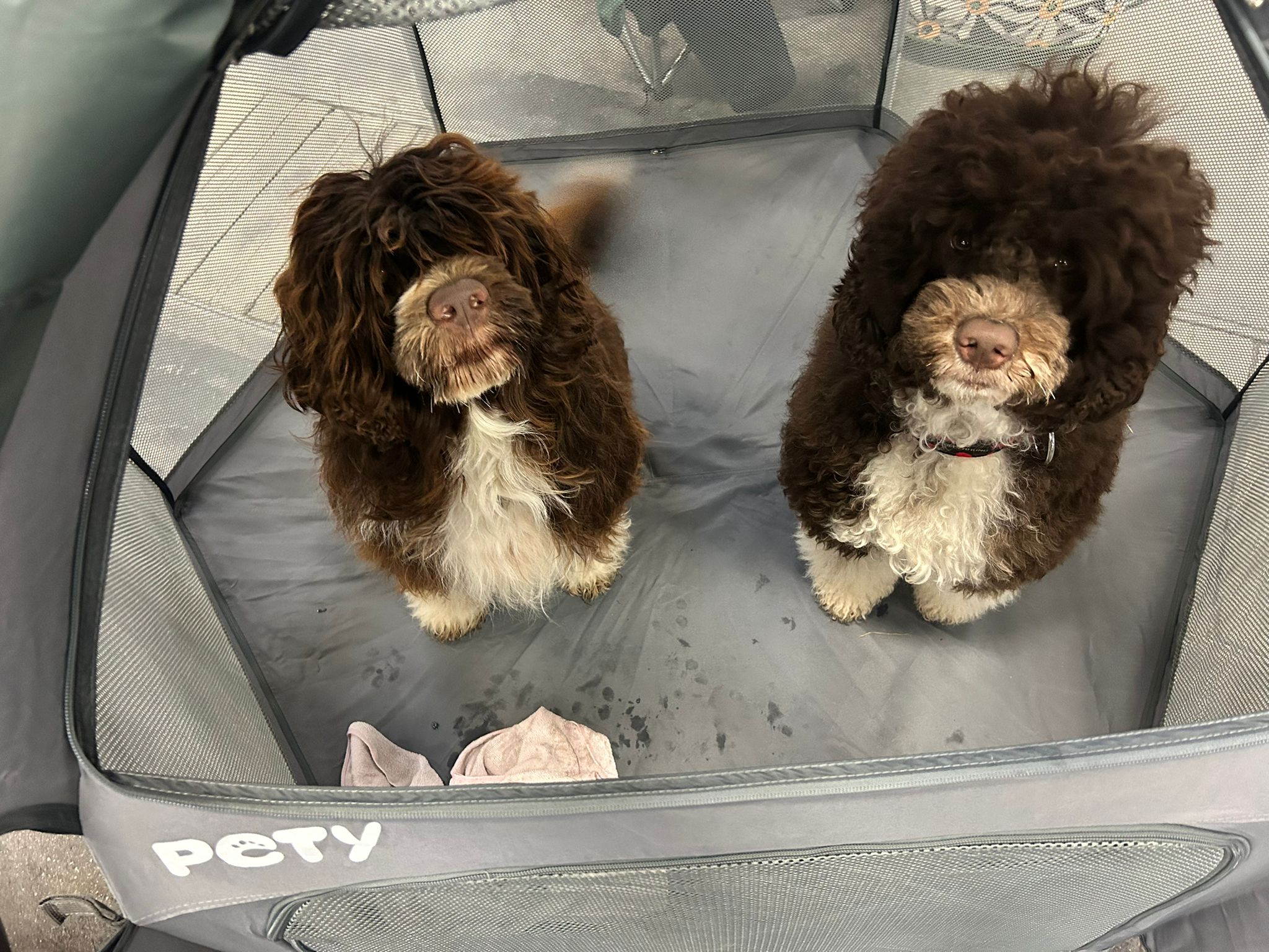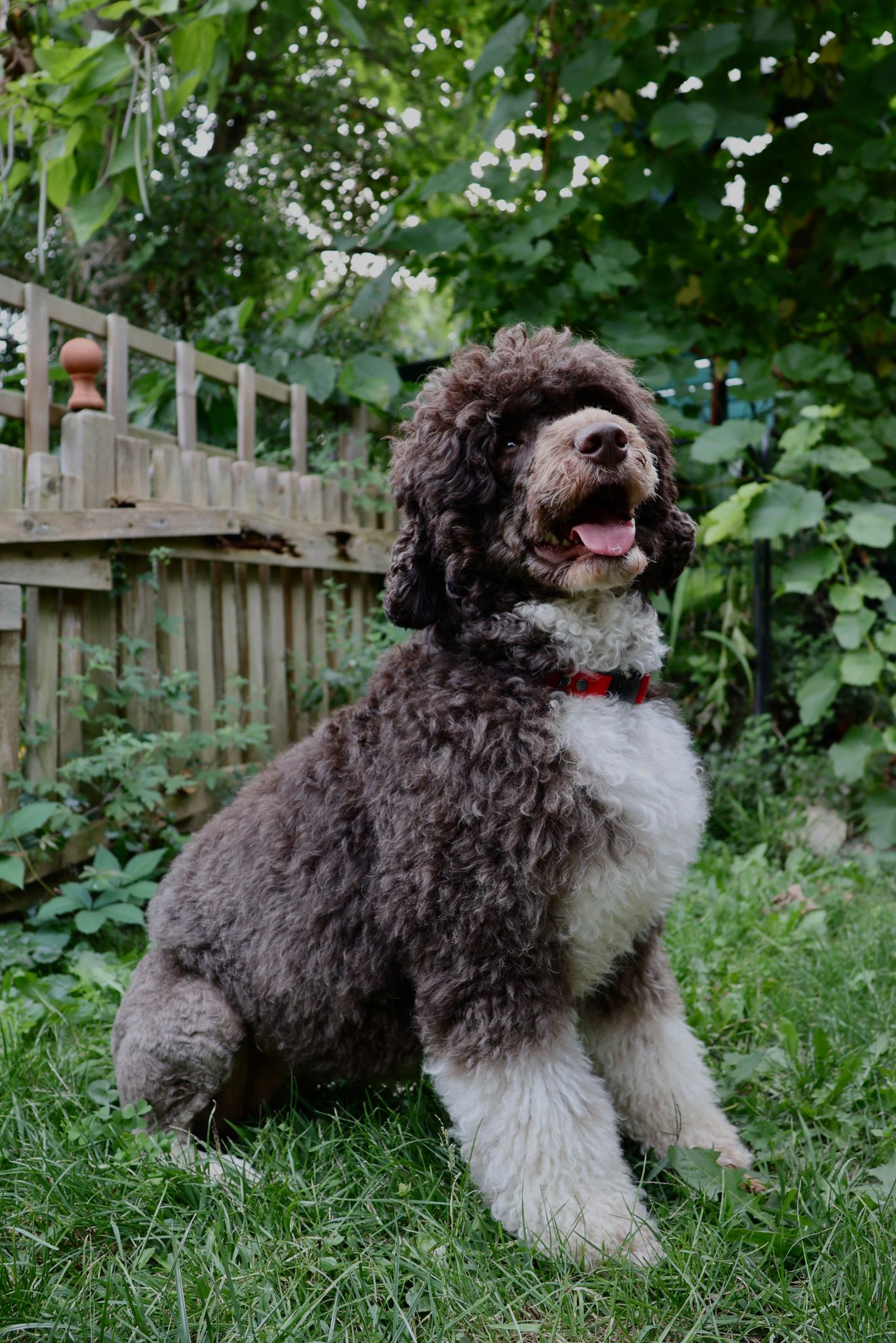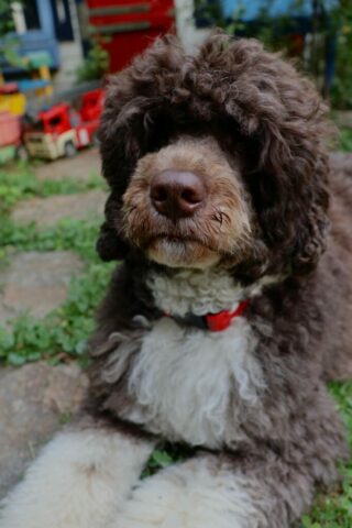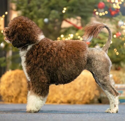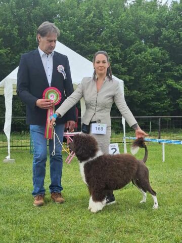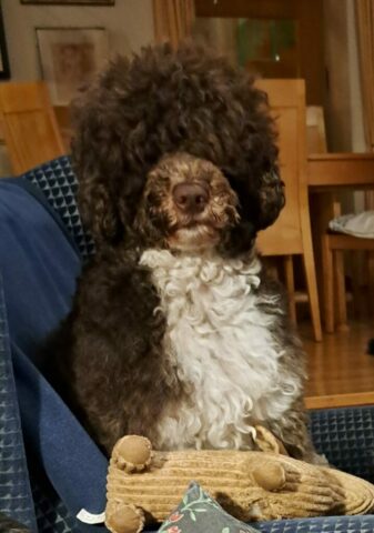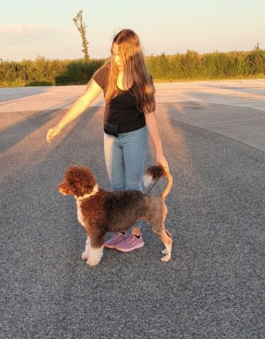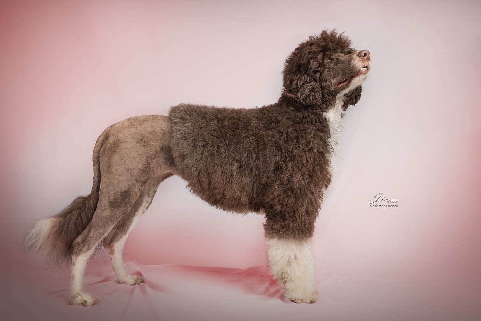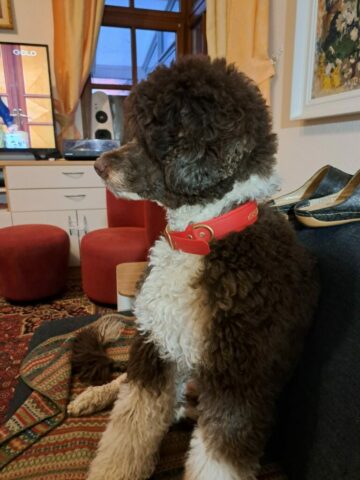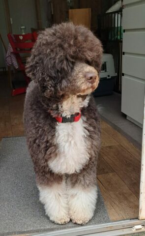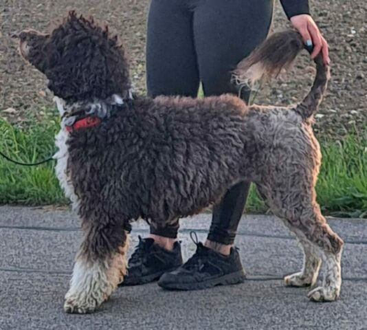 Kirsi („Mariposa’s Cherry Bomb“) ist am 04.06.2023 geboren (Stammbaum). Sie ist braun mit weißen Markierungen und curly.