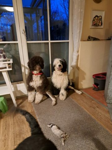 Patack („Skipnstone’s Patack Made for Fiapinhos“) ist am 26.4.2024 geboren (Stammbaum). Er ist schwarz-weiß und wavy. Patack ist noch dabei, alle notwendigen Voraussetzungen für die Zuchtzulassung zu erfüllen.